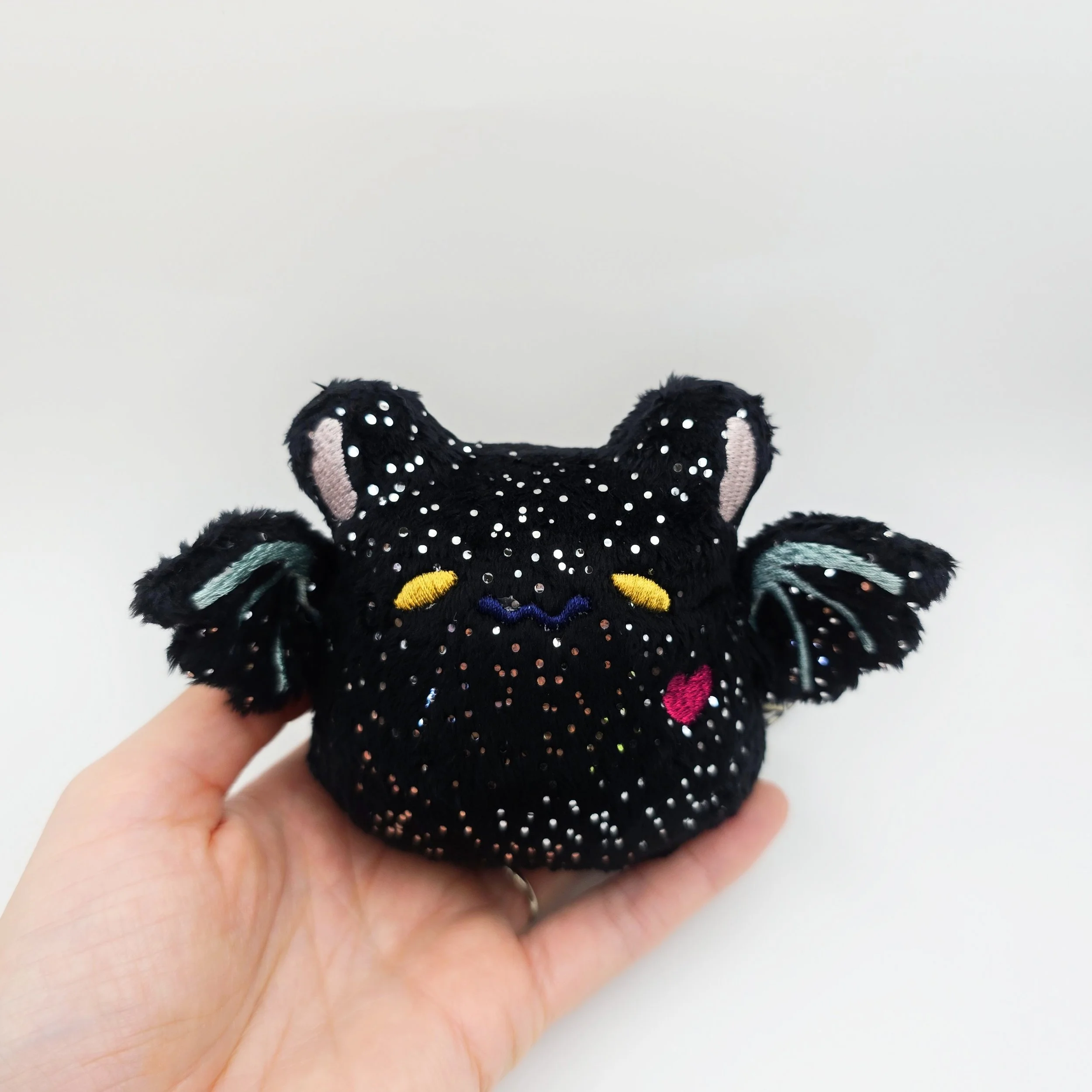Dumpling Bat Black Glitter Handmade Doll